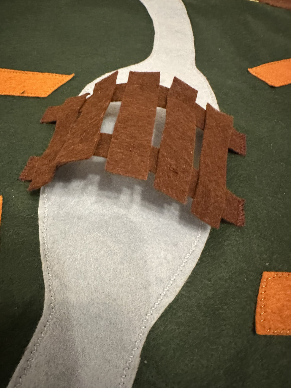 L’ensemble est enrichi d’applications au crochet, de figures en feutre en relief, d’éléments en amigurumi et de feutrage. L’association de ces matériaux et techniques artisanales crée une grande richesse tactile et visuelle, donnant naissance à des volumes, des textures et des détails qui invitent à l’exploration sensorielle.